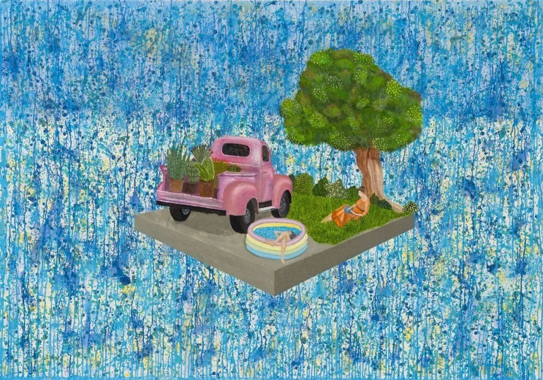Break on a sunny day, Oil and acrylic painting on canvas, 140 x 200 cm, 2023
