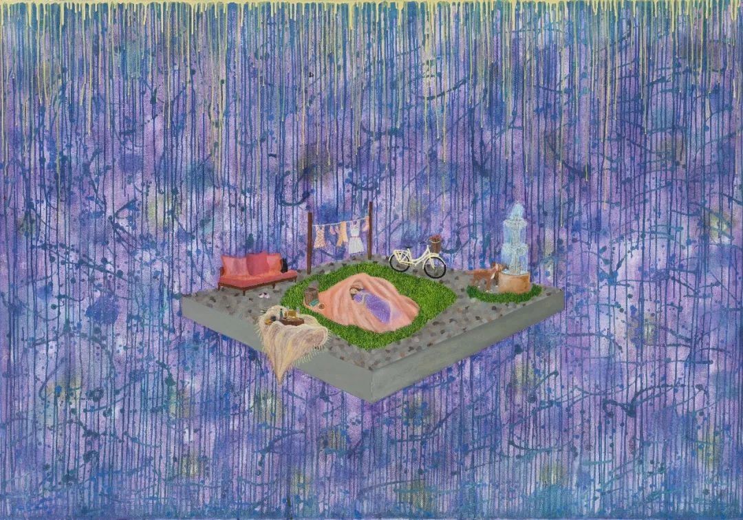 Camping at home, Oil and acrylic painting on canvas, 140 x 200 cm, 2023