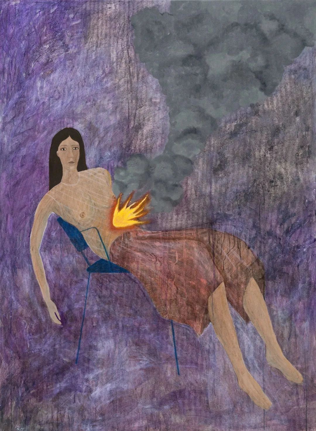 Stomach Fire, Oil and acrylic painting on canvas, 132 x 97 cm, 2023
